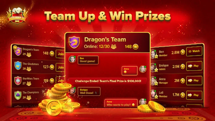 Zabava je zagarantovana uz obilje nagrada koje vas čekaju svakodnevno. Pridružite se zajednici Backgammon King i odmah ćete biti nagrađeni početnim bonusom. Svakodnevni besplatni novčići, bonusi za svakog prijatelja koji se pridruži i ekskluzivne nagrade za dostizanje novih nivoa su samo deo onoga što vas čeka. Osvajajte kolektivne timske nagrade i uživajte u dostignućima kroz nedeljne turnire. Ova društvena igra na tabli omogućava vam da se udružite sa drugim igračima radi ostvarivanja zajedničkih ciljeva, izazovete prijatelje na dvoboj i koristite live ćaskanje za interakciju sa protivnicima i saigračima, stvarajući nezaboravno iskustvo.