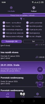 Pored živog programa, otkrijte i bogatu arhivu sadržaja dostupnu kad god poželite. Prepustite se "Toplim ljuckim pričama", gde Daško Milinović sa svojim zanimljivim gostima otvara prozor u živote i iskustva koja inspirišu. Ne propustite ni "Rastrojavanje", arhivu emisije koja je ugostila sjajne ličnosti i pokrenula pametne i važne teme kroz opuštene razgovore. Od ranog jutra do kasnih večernjih sati, ova platforma nudi neprekidnu paletu autorskog sadržaja, pažljivo biranog da vas informiše, zabavi i podstakne na razmišljanje. Doživite audio avanturu koja slavi originalnost i kvalitet.