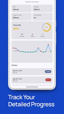 Napredak je merljiv i transparentan uz sveobuhvatnu statistiku. Pratite svaku sesiju, analizirajte najbolje i prosečne rezultate, i vizualizujte svoje poboljšanje kroz detaljne grafikone i istoriju pokušaja. Svaka igra dolazi sa ciljnim vremenima koja motivišu da gurate svoje granice. Treniranje sa Reaction Time: Reflex Testom donosi opipljive prednosti u stvarnom svetu, od povećane efikasnosti u sportu i gejmingu, do poboljšane pažnje i koncentracije u svakodnevnim aktivnostima poput vožnje. Pripremite se da steknete konkurentsku prednost i dosegnite vrhunac mentalnih performansi.